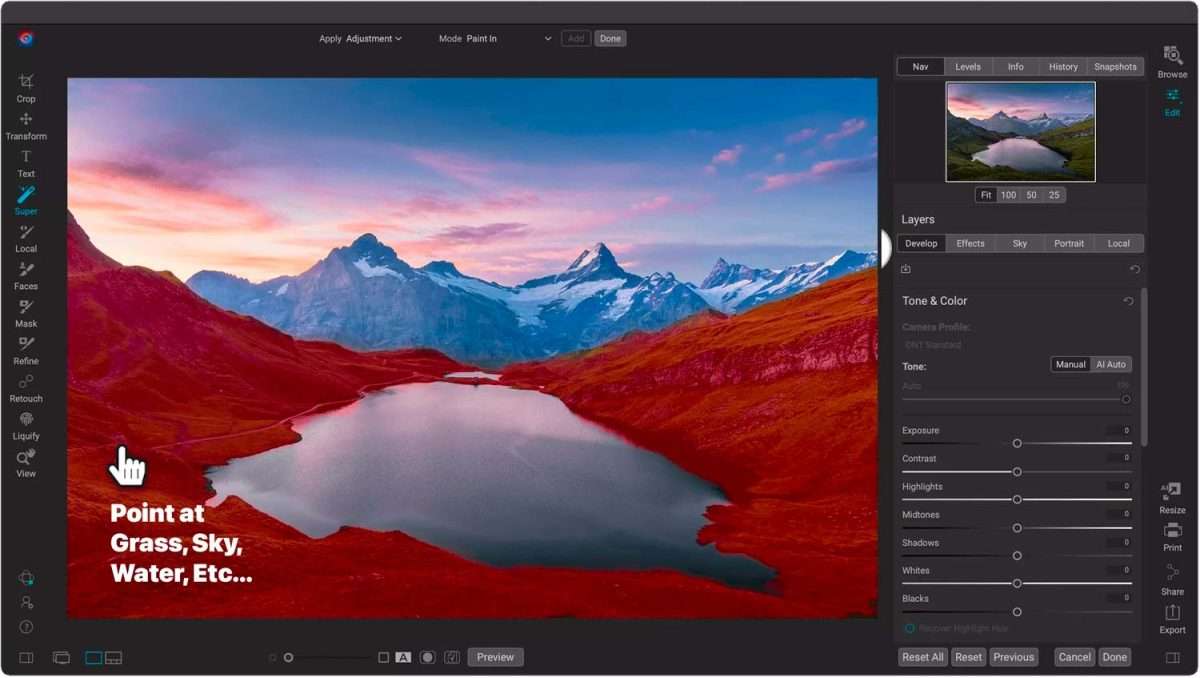 Maar je wilt toch overstappen (of beginnen) met de andere software waarmee je je foto’s kunt bewerken! Dan is er keuze zat. Bijvoorbeeld Luminar Neo. Over Luminar Neo schreven we regelmatig. Het is een aantrekkelijk alternatief voor Lightroom Classic. Het heeft een bibliotheekfunctie (die overigens niet zo goed is als die van Lightroom). De gereedschappen waarmee je je foto’s bewerkt, worden veelal aangestuurd door Artificial Intelligence