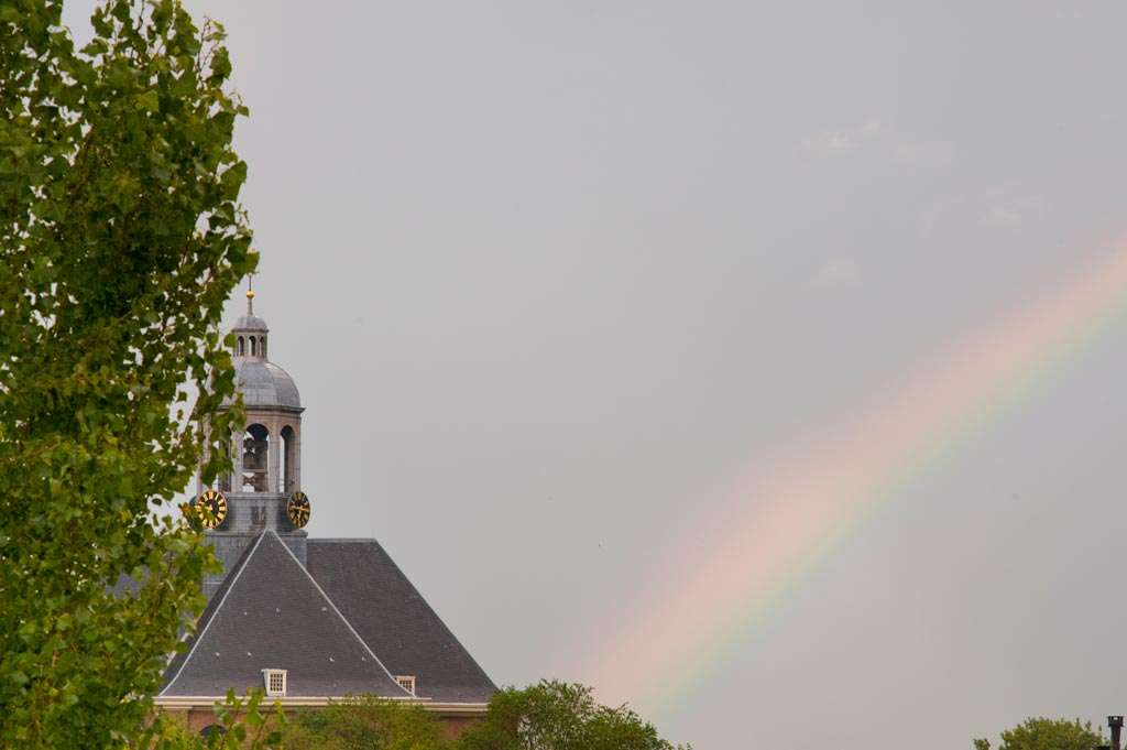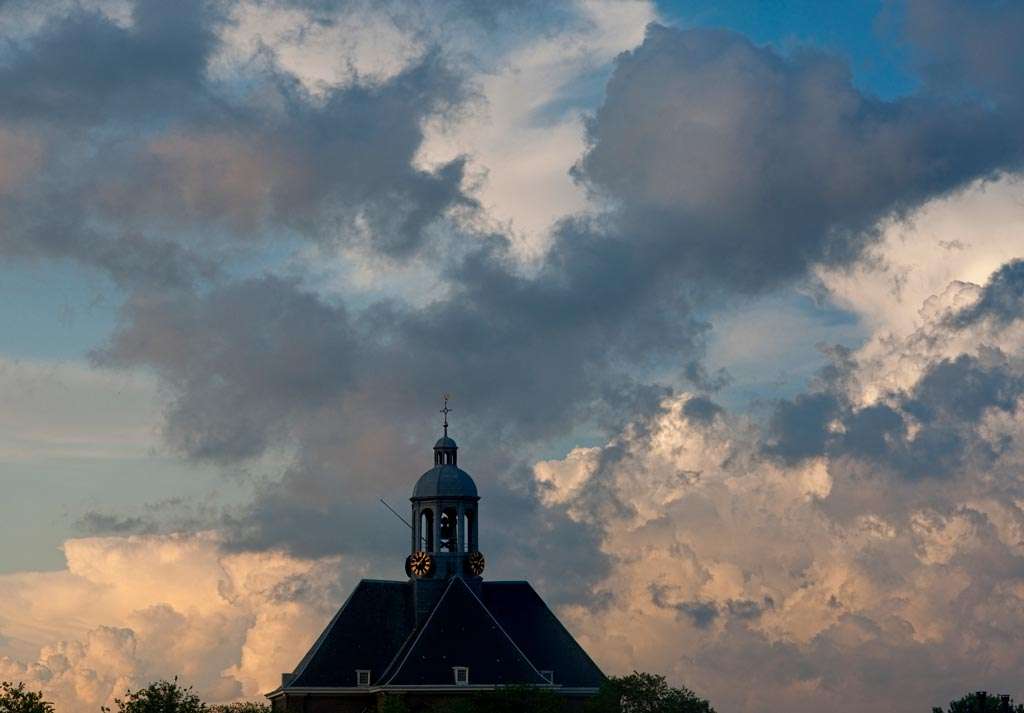 Ter illustratie een onderwerp waar ik mezelf in vastbeet: het begon met mooie (wolken)luchten uit het raam, het werd uiteindelijk de tentoonstelling De Oosterkerk in 67 seizoenen. De eerste foto van mijn onderwerp was met mijn mobiele telefoon, toen het plotseling hevig begon te sneeuwen. Ik maakte een foto vanuit het raam, en realiseerde met een tijdje later dat het ‘t silhouet van de kerk – de Amsterdamse Oosterkerk – was, wat de foto iets aardigs gaf. Ik begon de luchten boven de Oosterkerk in de gaten te houden. Drie jaar later waren er honderden foto’s van de Oosterkerk, in alle vier de seizoenen, met alle verschillende sferen die daar bij horen. Ik maakte wat animaties van een stel foto’s van de opkomst van de maan achter die kerk. Ik maakte prints, en ontwikkelde de raw-bestanden die ik pas later was gaan schieten in Photoshop, Lightzone, Bibble en uiteindelijk Lightroom. In de loop van die drie jaren werden mijn foto’s steeds beter. Technisch beter, maar ook gewoon mooier om te zien. Het resulteerde in een tentoonstelling in diezelfde Oosterkerk. Dankzij het vastbijten in een onderwerp.
