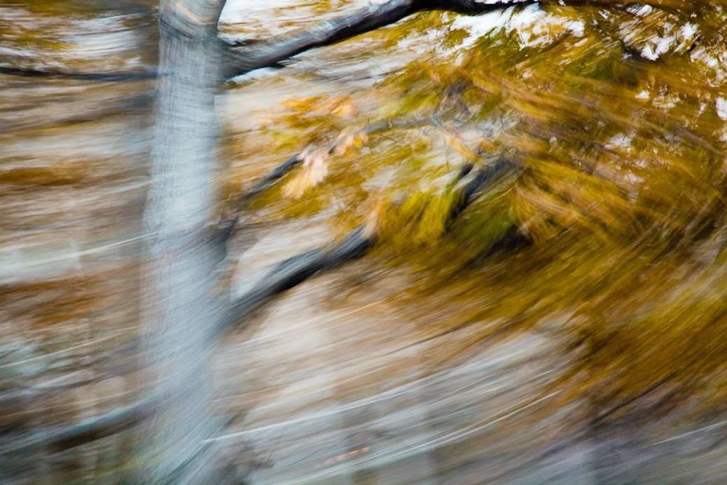 JK: ‘Zeker: bewegingsonscherpte, bewogen foto’s, foto’s die ik neem vanuit een rijdende auto. Misschien gaat het wel Passenger Seat heten. Ik heb nu twee keer een tocht gemaakt in het Noordoosten van de VS; in de herfst, omdat de kleuren dan zo mooi zijn en nog een keer in de winter. Ik moet nog een keer in het voorjaar en de zomer en dan is het boek klaar. Je moet er heel veel foto’s voor nemen, omdat het resultaat zo toevallig is. Mensen kijken je heel vreemd aan: wat zit je te doen? Het is belangrijk om altijd een eigen project te hebben als je beroepsmatig fotografeert. Je bent in fotografie verzeild geraakt omdat je ervan houdt, maar tien of twintig jaar later gaat het je misschien vervelen, dan is het gewoon werk geworden. Ik probeer mensen altijd enthousiast te maken om iets te vinden wat ooit hun passie opriep. En je moet vooral proberen daar tijd voor vrij te maken.’