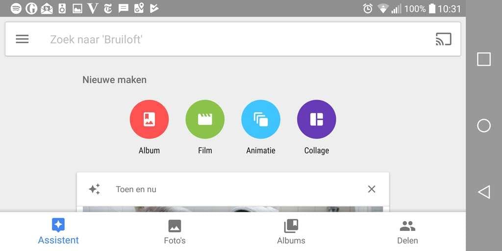 Het maken van zo’n thema-filmpje is heel eenvoudig. Ga naar de Assistent in Google Foto’s.Tik daar op Film. Je gaat naar het venster Film maken. Daar krijg je de verschillende thema’s te zien waaruit je kunt kiezen. Op dit moment zijn dat deze thema’s: